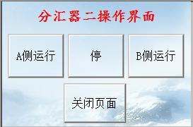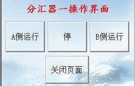 圖3 運行界面 ③打開(kāi)分匯器:分別輕按圖3所示運行界面中的下方“分匯器”圖標,彈出如圖4所示的操作窗口,輕按“A側運行”按鈕,分匯器打開(kāi),直至閥門(mén)運行至全開(kāi)位置,系統自動(dòng)斷電,閥門(mén)停止; 分別輕按圖3所示運行界面中的上方“分匯器”圖標,彈出如圖5所示的操作窗口,輕按“A側運行”按鈕,分匯器打開(kāi),直至閥門(mén)運行至全開(kāi)位置,系統自動(dòng)斷電,閥門(mén)停止;