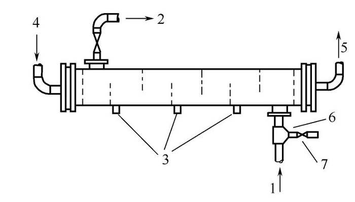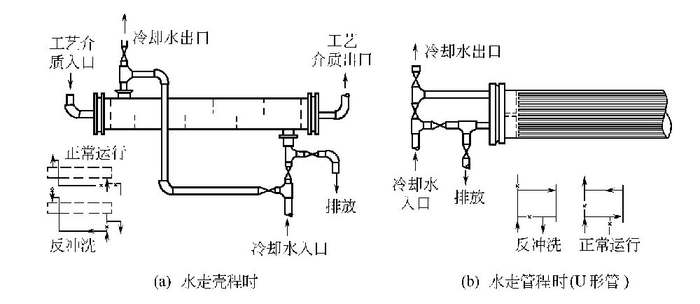 膠球清洗裝置循環(huán)冷卻水系統在運行狀況下進(jìn)行清洗的方法有以下兩類(lèi): 1)不停車(chē)單臺清洗 為物理清洗方法,可在不停車(chē)狀況下對個(gè)別水冷卻器進(jìn)行處理,清除附著(zhù)的軟垢,恢復傳熱效率?諝鈹噭(dòng)法示意圖[列管式水冷卻器(水走殼程)1—冷卻水進(jìn)口;2—冷卻水出口;3—壓縮空氣進(jìn)入點(diǎn);4—工藝介質(zhì)進(jìn)口;5—工藝介質(zhì)出口;6—壓縮空氣管;7—快速啟動(dòng)空氣閥 ①空氣攪動(dòng)法 在單臺水冷卻器正常運行期間,將壓縮空氣(或者是氮氣)通入水冷卻器水側?諝馐估鋮s水的流動(dòng)處于紊流狀態(tài),可以松散黏附在管壁上的沉積物,使其隨水流帶出。壓縮空氣的壓力應比冷卻水壓力大0.15~0.18MPa。這種方法常用以處理殼程水冷卻器中的軟垢?稍跉こ趟鋮s器的殼下部接多個(gè)空氣管口,并在冷卻水出口管處接就地排污口。定期或不定期進(jìn)行空氣攪動(dòng),污水就地排放,以免污垢再返回系統。這樣處理之后,往往能使工藝介質(zhì)的溫差大幅增加。 圖1為列管式水冷卻器 (水走殼程)空氣攪動(dòng)法示意圖。 ②反沖洗法 反沖洗又稱(chēng)回洗。通過(guò)定期或不定期改變水的流向沖洗水冷卻器上附著(zhù)的軟垢。適用于殼程及管程水冷卻器。反沖洗法示意圖見(jiàn)圖2。 圖2 反沖洗法示意圖 ③膠球清洗法 膠球清洗裝置清洗是將海綿橡膠球通過(guò)螺旋式水泵隨冷卻水壓入水冷卻器的管子中,利用膠球的擠擦作用除去管內壁的沉積物。海綿膠球從水冷卻管的另一端流出后,用粗篩截住回收,循環(huán)使用。海綿膠球有吸水性,吸水后密度與水相同。球的直徑需比管內徑大1.0mm,使用一段時(shí)間后,如因受摩擦直徑變小,則應廢棄更換。此法在我國電力企業(yè)應用較廣,適用于管程銅水冷卻器的軟垢清洗。 2)不停車(chē)的系統清洗 為化學(xué)清洗方法,是在不停車(chē)的情況下向循環(huán)冷卻水中加入化學(xué)藥劑對系統中沉積的污垢進(jìn)行清洗,通過(guò)排污水將污垢排出系統。采用不停車(chē)的系統清洗時(shí),應在處理之前根據監測數據掌握污垢障礙的原因,針對污垢的性質(zhì)提出合適的處理方案。如果污垢是以微生物為主的黏泥軟垢,則應使用殺生劑進(jìn)行剝離。不停車(chē)處理微生物軟垢,一般效果很好。如果污垢的組成主要是水垢,則應使用阻垢分散劑進(jìn)行處理。不停車(chē)處理水垢的效果不如停車(chē)單臺酸洗徹底。不宜用不停車(chē)系統清洗方法處理腐蝕產(chǎn)物,因阻垢分散劑對鐵銹的作用很小。 |