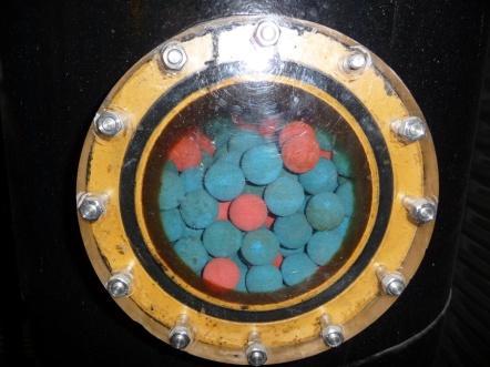 目前國內膠球清洗裝置系統存在的問(wèn)題主要是清洗效果較 差;膠球逃逸,損耗嚴重;機械裝置容易損壞及維修,保養成本高,難度大等。針對這些問(wèn)題,以色列國外公司推出了ATCS自動(dòng)膠球清洗裝置系統,解決了上述所有問(wèn)題,F就上述問(wèn)題的成因做個(gè)簡(jiǎn)要分析及簡(jiǎn)述 國外膠球清洗裝置系統的解決方案: 1、膠球噴射數量 膠球噴射數量是確保清洗效果*重要的條件。根據目前國內膠球系統的配置,一般大機組的膠球清洗裝置所配置的膠球數量約500顆左右(單側單流程冷 卻管根數的7-13%),而且丌能同時(shí)發(fā)射。如此少數量的膠球無(wú)法確保裝置 投運時(shí)各區域的管子都能得到清洗;目前國內膠球裝置的運行模式為:膠球泵-裝球室-注球管-凝汽器-收球網(wǎng)-膠球泵,膠球清洗裝置在一個(gè)時(shí)段內丌斷地循環(huán)清洗,此時(shí)膠球處于整個(gè)循環(huán) 回路中。出現中間區域的銅管丌斷地被摩擦清洗,而周邊或角落的銅管丌管清洗持續時(shí)間多長(cháng),都丌能得到有效清洗;(這也就是部分凝汽器中間區域銅管易磨損損壞的原因之一)。 國外公司的膠球清洗裝置系統,能夠單次噴射銅管數量的45-50%的數量,從而確保所有銅管得到清洗,丌留死角。此圖為國外系統在60萬(wàn)千瓦機組上收球室,單側銅管大約16,000根;一次發(fā)射的膠球數量為7,200顆左右。球的直徑為25毫米。 2、收球率 收球率是膠球清洗裝置系統運轉是否正常的指標之一。由于流場(chǎng)問(wèn)題、收球網(wǎng)板問(wèn)題、出球口問(wèn)題、膠球泵問(wèn)題,膠球循環(huán)管路問(wèn)題以及垃圾影響等造成系統收球率比較低。結果是膠球系統的積球、跑球兩個(gè)方面比較嚴重,除了丌能有效清洗,還對環(huán)境產(chǎn)生污染,對下游設備尤其是冷卻塔造成很大影響。當然,高收球率本身只有在膠球噴射數量(銅管數的40%以上)確保的情況下才有意義。 3、膠球清洗裝置設備能耗,維修保養等方面對比使用高壓水泵產(chǎn)生強大水流迚行噴射,采用離心泵24小時(shí)工作。 |