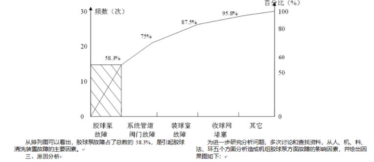 膠球清洗■膠球清洗裝置優(yōu)化改進(jìn)技術(shù)分析?某發(fā)電廠(chǎng)350MW機組凝汽膠球清洗裝置故障率高,膠球清洗裝置的無(wú)法正常投運,致使凝汽器端差增大。從人員、設備、環(huán)境三大因素入手,找出設備故障的原因,并對系統進(jìn)行優(yōu)化改進(jìn),使膠球清洗裝置正常投運,達到安全經(jīng)濟運行的目的。 1概述 某電廠(chǎng)機組350MW的機組的基礎上通過(guò)本體通流改造后優(yōu)化擴容的機組。循環(huán)水冷卻水來(lái)自珠江,經(jīng)江邊一次濾網(wǎng)的過(guò)濾后,由循環(huán)水泵輸送經(jīng)二次濾網(wǎng)進(jìn)入凝汽器,在冷卻低壓缸排汽后,排回珠江。膠球清洗裝置設置在二次濾網(wǎng)后凝汽器進(jìn)口處。包括有收球網(wǎng)、膠球泵、裝球室及附屬的閥門(mén)和管道。機組在正常運行時(shí),膠球清洗裝置如能按要求投入,主要起到清除凝汽器銅管內積垢的,達到提高冷卻效果的目的。 1.1設備規范 凝汽器型號:N-17600-Ⅰ 二次濾網(wǎng)型號:LSHK-1800 收球網(wǎng)型號 膠球泵型號 注:設備規范摘自該電廠(chǎng)運行規程 1.2膠球清洗裝置系統簡(jiǎn)圖 1.3清洗原理 膠球泵將裝球室里的膠球打入凝汽器循環(huán)水進(jìn)水管,膠球是非常柔軟的海綿球,直徑較銅管內徑大1~2毫米,進(jìn)入循環(huán)水進(jìn)水管后被循環(huán)水壓入銅管內,與管壁接觸產(chǎn)生擦拭,起到清洗凝汽器銅管作用,清洗后的膠球回到收球網(wǎng),膠球泵再把從收球網(wǎng)收集的膠球,送入凝汽器循環(huán)水入口使其不斷循環(huán),清洗完畢將球回收到裝球室,下次清洗再次使用。 圖1 機組膠球清洗裝置故障增多。特別是膠球泵經(jīng)常有故障需解列檢修,影響膠球清洗裝置的正常投運,至使凝汽器端差增大,特別在機組渡夏期間,對機組的真空影響更加明顯。為減少膠球清洗裝置故障,進(jìn)行了深入調查分析。